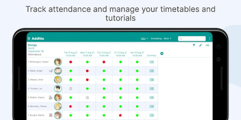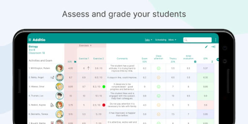 Az Additio App a tanárok mindennapjait teszi zökkenőmentesebbé. Szervezze óráit, jegyezzen értékeléseket, kommunikáljon hatékonyan diákjaival és szüleikkel. Egy intuitív eszköz, hogy minden adminisztratív feladat egyszerűbb legyen, és több ideje maradjon a tanításra.