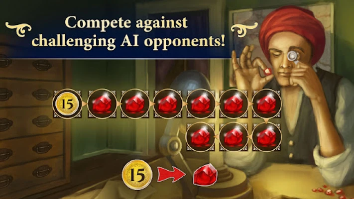 Légy te a bazár legügyesebb kereskedője, és gyűjtsd össze elsőként a szükséges rubinokat! A játék során egy kereskedőt és négy segédjét vezeted a nyüzsgő piactér 16 egyedi helyszínén. Minden akcióhoz stratégikusan kell mozgatnod a kereskedődet, és egy segédet magad mögött hagynod az ügyintézésre. Az igazi kihívás abban rejlik, hogy gondos előretervezéssel kell visszatérned segédeidhez, nehogy nélkülük maradj. Növeld talicskád kapacitását, szerezz különleges képességeket, melyek előnyt biztosítanak versenytársaiddal szemben, vásárolj rubint, vagy cserélj árukat a győzelemhez vezető úton.