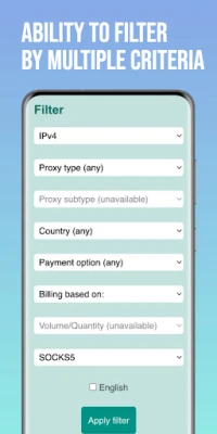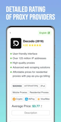 A Caproxy kiválóan testreszabható keresőfunkciójával másodpercek alatt megtalálhatja azt a proxy szolgáltatást, amely pontosan megfelel az Ön igényeinek. Szűrje a kínálatot ország, protokoll (mint például SOCKS5 vagy HTTPS), IP verzió (IPv4, IPv6), proxy típus és altípus, fizetési opciók, valamint a lefedett tartalom és mennyiség alapján. Nincs többé órákig tartó kutatás tucatnyi weboldalon; a Caproxy leegyszerűsíti a folyamatot, így Ön azonnal megtalálja a tökéletes megoldást. Ez az intuitív keresőeszköz a kulcs a gyors és hatékony döntéshozatalhoz, legyen szó személyes böngészésről, üzleti adatelemzésről vagy online anonimitásról.