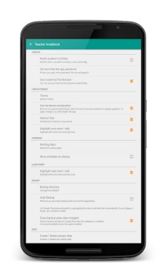 A **Teacher Gradebook** segítségével minden fontos adat rendezetten és digitálisan áll rendelkezésedre. Néhány érintéssel értékelhetsz, átlagokat számolhatsz, és nyomon követheted a diákok előmenetelét. Kezelheted az órarendedet, rögzítheted a hiányzásokat, sőt, akár részletes PDF jelentéseket vagy egyedi értékelési rubrikákat is létrehozhatsz. Legyen szó csoportos munkákról, az osztálytermi napló vezetéséről vagy személyes jegyzetek rögzítéséről, ez az alkalmazás minden eszközt biztosít ahhoz, hogy a tanítás gördülékenyebb és hatékonyabb legyen.